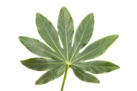 Aralia leaf on white background, top view, copy space, Spring, summer concept