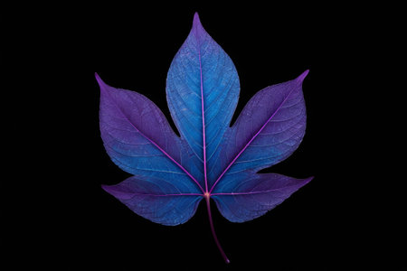 Leaves of a castor aralia, Kalopanax septemlobus, with a blue background.