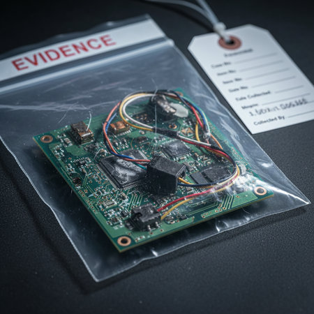 A focused, square (1:1) close-up still life emphasizing the critical containment of dangerous e-wast
