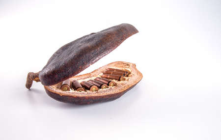 Ammunition. Cartridges grow in the pods of a dangerous plant. Danger Art. Poster. Isolated on a white background.