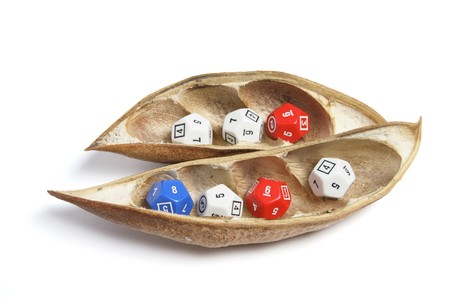 Dice in Dry Pods on White Background