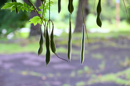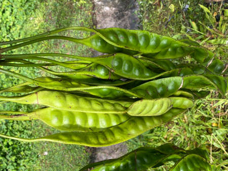 tropical stinking edible beans or bitter bean on white background Parkia Speciosa.