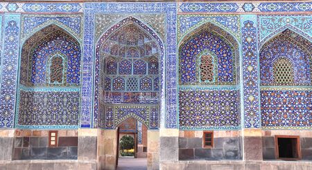 Isfahan, Iran - May 11, 2017:Mosque in Isfahan blue. Traditional ornaments and decorations. Iran