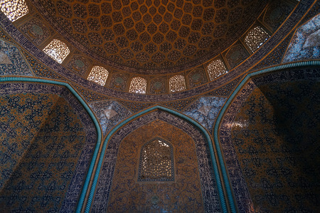 Beautiful interior of Sheikh Lotfollah Mosque at Naqhsh-e Jahan Square in Isfahan, Iran. Construction of the mosque was finished in 1618.