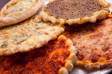 Oriental pizza plate of traditional Arabic food manaqish.
