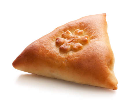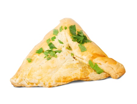 Tartarian meat pasty. Isolated over white backgrouund