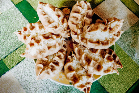 Triangular potato patties on the table - traditional tatar food