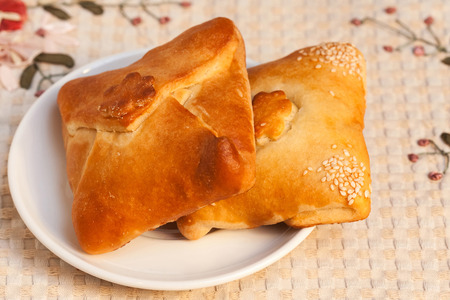 Bukharian (Uzbek) traditional pastries, stuffed with lamb meet and onion, with sesame and nigella