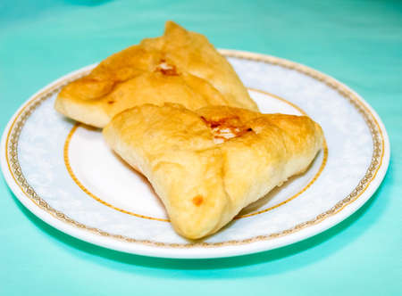 Tatar traditional triangular pastry with potatoes, onion, meat