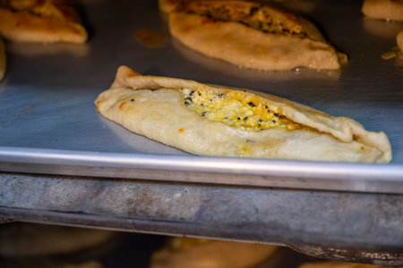Pastries in oven being baked and freshly made of flour, olive oil and cheese, made according to jordan and palestine way