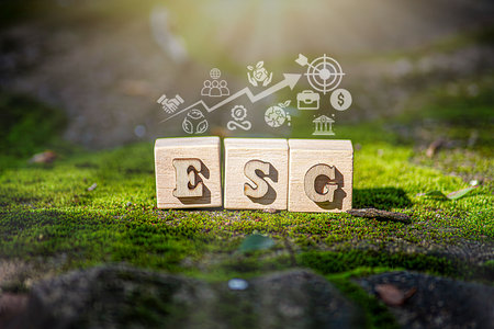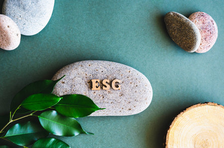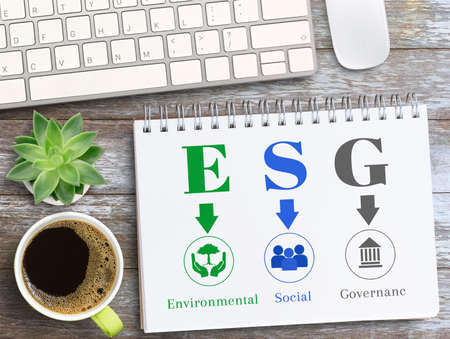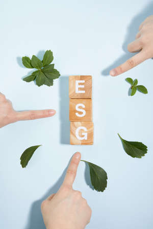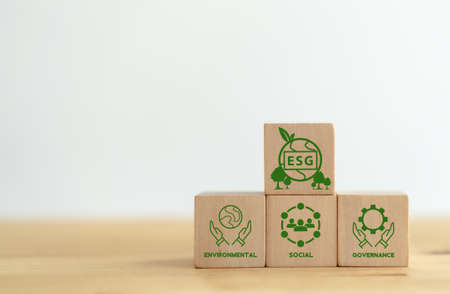 ESG concept of environmental, social, and governance. Sustainable corporation development. words ESG on a wood block on the environmental