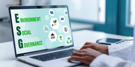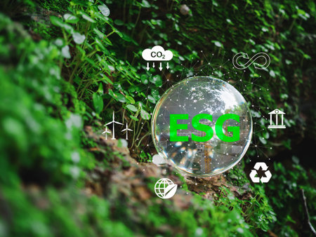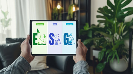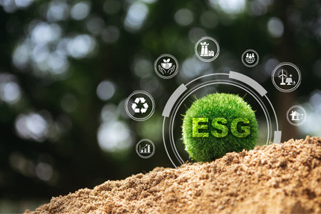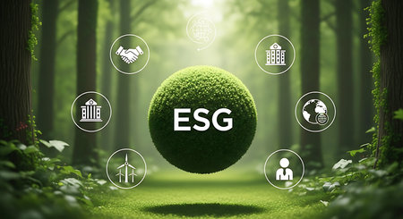 A conceptual image depicting the integration of ESG principles in business with digital enhancements.