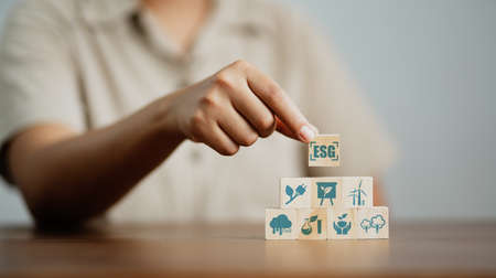 ESG concept of environmental, social and governance. words ESG on a wood cube is an idea for business sustainable organizational development. ​account the environment, society and corporate governance