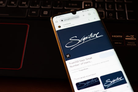 Signature bank and website on screen. American Siganture bank collapse. Bank goes bankrupt