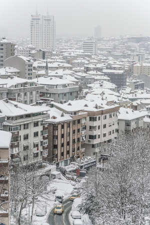 Buildings and streets under snow in Istnabul, Turkey in winter