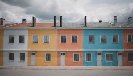 Assorted-color concrete row houses under white clouds during daytime
