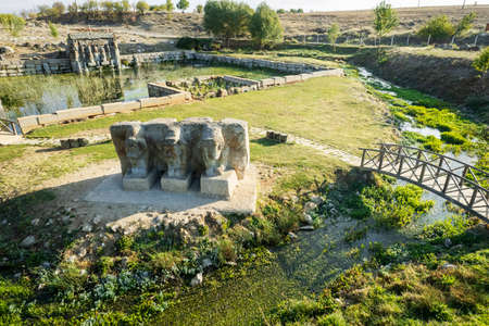The Hittite spring sanctuary of Eflatun Pinar lies about 100 kilometers west of Konya close to the lake of Beysehir in a hilly, quite arid landscape.
