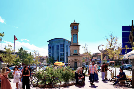 Emirdag, Afyonkarahisar / Turkey - August 07 2018: City center with clock tower