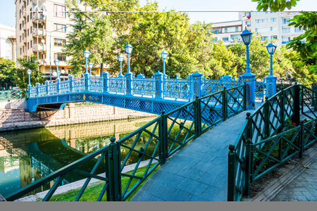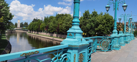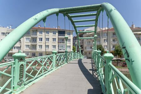 Eskisehir, Turkey: Beautiful green bridge. Porsuk River view in Eskisehir. Eskisehir is a modern city in center of Anatolia.