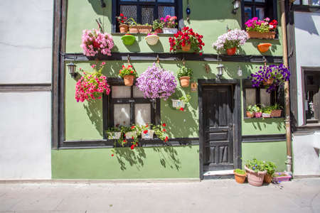 Plovdiv, Bulgaria - July 17, 2018: Beautiful view of houses and streets from the period of Bulgarian revival in the old town; city Plovdiv, Bulgaria. Plovdiv also is the European capital of culture for year 2019 and very famous touristic place.