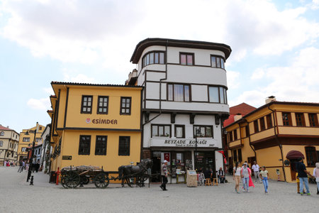 ESKISEHIR, TURKEY - SEPTEMBER 03, 2016: Old buildings in historic Odunpazari district. Odunpazari is one of the most populer touristy district with old Ottoman Buildings in Eskisehir.