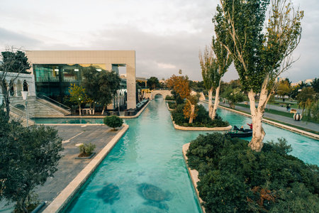 Eskisehir, Turkey - October 2021: Eskisehir Porsuk river and bridge view. Eskisehir is famous for its river and bridges in the central area.