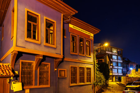 Historic buildings at night in cultural district. August 9, 2025, 2 Bursa Turkey.