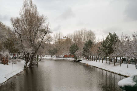 Winter landscape with snow covered at the park