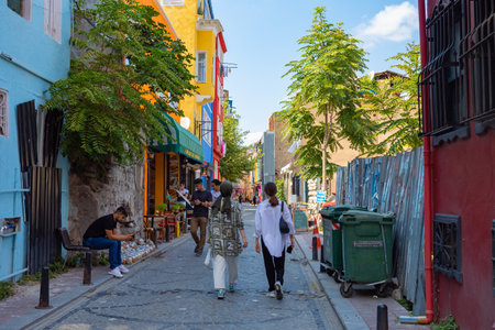 Travel to Istanbul background photo. Tourists or local people in Balat district. Istanbul Turkey - 8.20.2022
