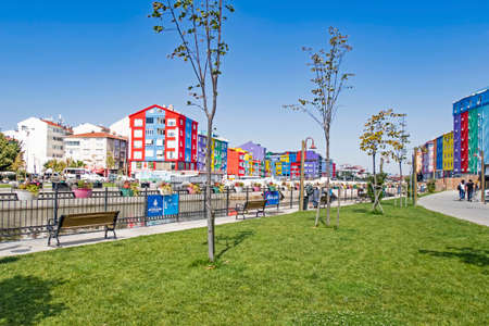ESKISEHIR , TURKEY - OCTOBER 2018: Colorful Odunpazari District houses view in Eskisehir City. Eskisehir is populer tourist deatination in Turkey.