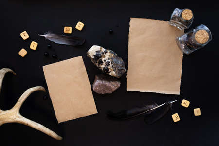 Witchcraft, spiritual esoteric practice and astrology, magic runes and spell book