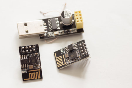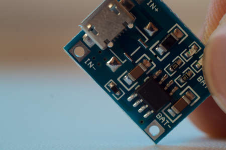 Close up of usb module electronic board with microchip and smd components