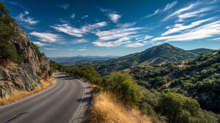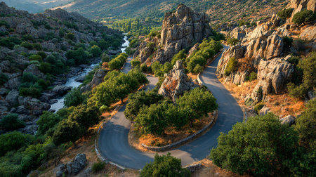 Scenic Mountain Road Winding Through Rugged Landscape with River