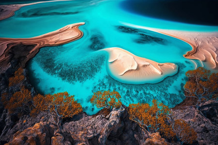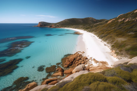Generative AI : Aerial view of the beach in Thistle Cove Cape le Grand Western Australia Australia