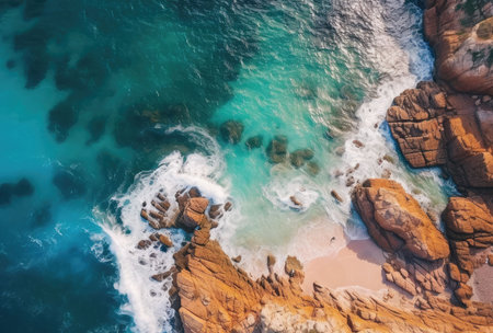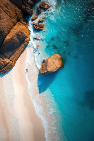 Generative AI : Aerial view of a rock on Nanarup little beach Albany Western Australia Australia