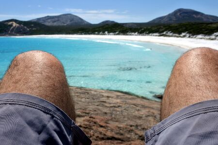 POV (point of view) of a man looking at the view of Thistle cove in Cape le grand Western Australia