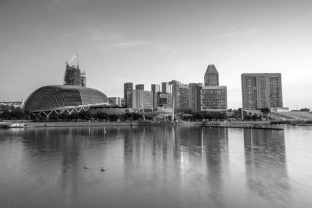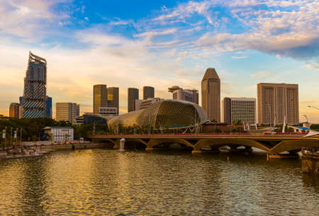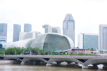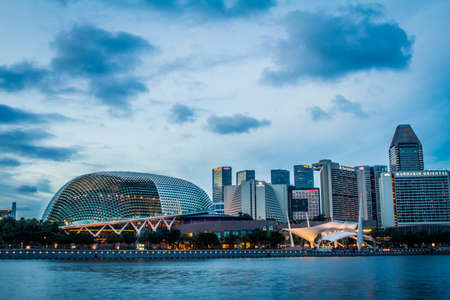 Singapore, Singapore - 20 May, 2010: Skyline of the city with the opera and theater house on the waterfront