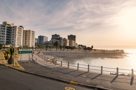 CAPE TOWN, SOUTH AFRICA - NOVEMBER, 2018: Sea point district streets and embankment sunset view, Cape Town