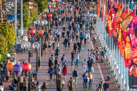 Sydney, Australia - October 19, 2013: View from above on Cockle Bay wharf with locals and tourists