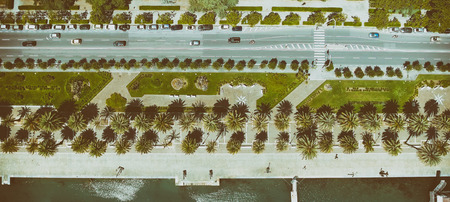 Aerial view of city promenade.
