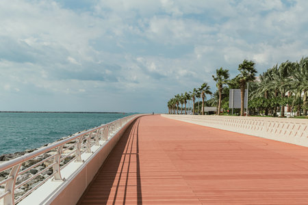 Scenic beachfront promenade with palm trees and ocean view