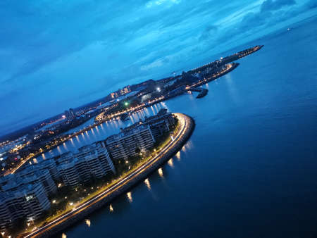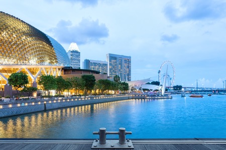 Singapore Landscape of business building around Marina bay, Singapore Skyline at night view the business bay district on Marina bay at dusk.