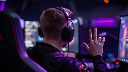 Professional cybersport gamer participating in esports tournament in gaming club
