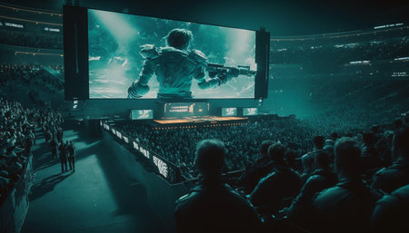 Crowded arena with vibrant lights at an intense esports gaming event