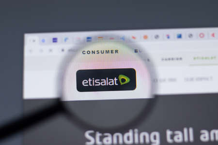 New York, USA - 17 February 2021: Etisalat logo close up on website page, Illustrative Editorial