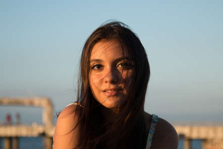 Portrait of girl outdoors with sunset light.