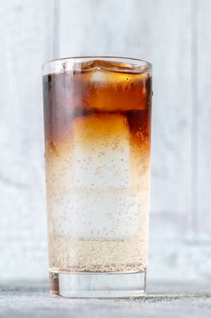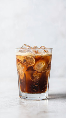 Fresh cool glass of soft drink with ice. Refreshment drink