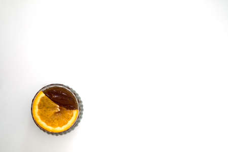 Ice americano and piece of orange with empty space