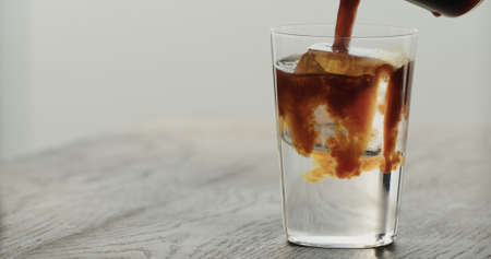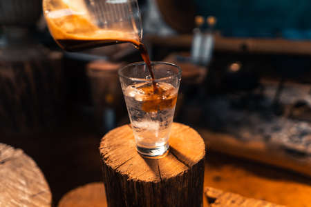 iced coffee in a glass making iced americano at home