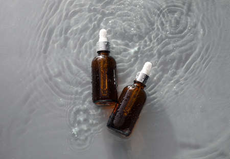 Liquid face serum in a glass bottles with a dropper. Essence of skin care for health and beauty.
